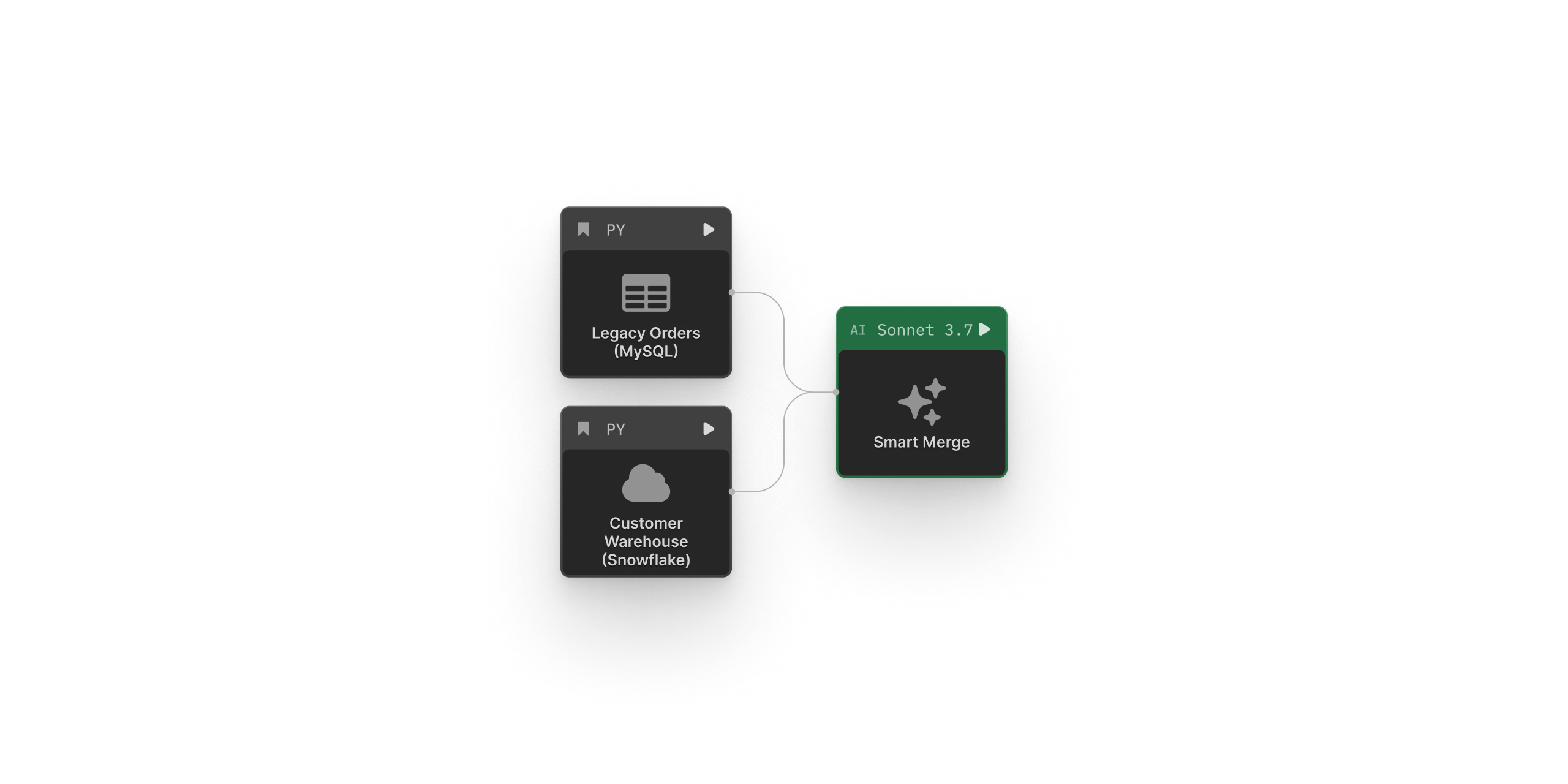 Seamlessly connect to your legacy tools, databases, pipelines, and APIs — like Snowflake, MySQL, or Databricks — and extend them with new functionalities using interconnected Python notebooks.